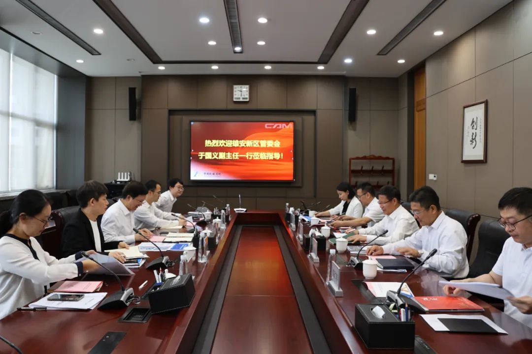 6月12日,雄安新区党工委委员、管委会副主任于国义一行到访中国开云(中国)总院,集团党委书记、董事长王德成予以热情接待,集团党委委员、副总经理王宇主持交流座谈。